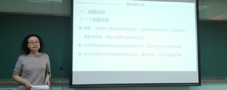 接下来,教学管理与研究中心主任张苏做了题为《精准落实 提升教学实效》的发言。她首先介绍了本次期中调研的基本情况,接着通过详实的数据进行了成绩分析,并给出了教学工作建议。她建议老师们研究2021年北京中考方向,加强基础知识、基本方法的有效落实,还要研究初18级学生特点,落实好分层分类教学,提升学生学习获得,要着力激发学生潜能,充分发挥年级组、备课组团队作用。
