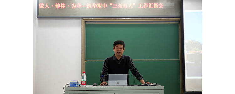 学生发展中心王田主任与李书霞副主任,分别就学校德育工作做汇报。李主任介绍了师生重点关注的德育相关制度,如《班主任认定制度》、《bg真人娱乐学生教育管理手册》、“学生志愿服务学时”等内容,并详细解读了《bg真人娱乐学生君子五则》,从“校服、礼仪、节约、手机管理、卫生”这五点最基本的日常行为规范入手,落细、落小、落实附中德育理念。王田主任就学生违纪通报、学生综评系统与“QHFZ三全育人”微信公众号做简单介绍,呼吁全校教师齐抓共管,三全育人。