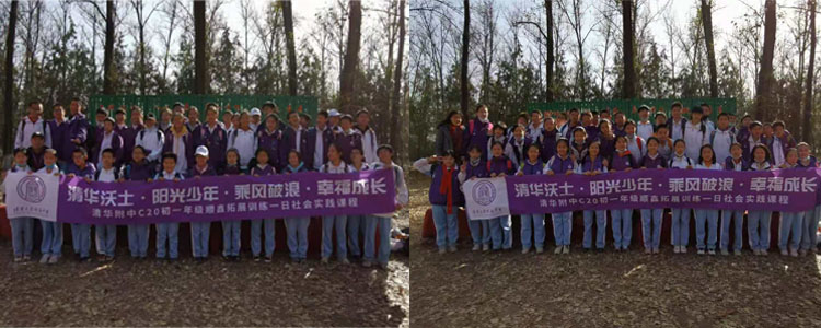 早晨七点十分,全年级准时集合完毕,整装待发。经过一个半小时的车程,全体师生到达顺义顺鑫拓展基地。本次秋游活动的主题是“清华沃土∙阳光少年∙乘风破浪∙幸福成长”,采取团队拓展的方式组织同学们在团队游戏中彼此配合、增进友谊。到达之后,在拓展师的组织下,同学们首先完成了各小组的团队文化建设,分组设计了具有团队特色的专属队名和队伍口号。