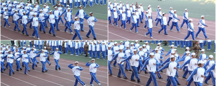 紧接着是各班分列式表演,伴随慷慨激昂的检阅进行曲,国旗班首先迈着整齐的步伐昂首挺胸而来。高一年级17个方阵依次齐步走过主席台接受检阅。同学们精神焕发,踢着整齐的正步,喊着嘹亮的口号,英姿飒爽地走过主席台。同学们气势如虹的阵容、铿锵有力的脚步,充分体现了本届高一学生的良好精神风貌,他们出色的表现赢得了在场领导、老师的阵阵掌声。
