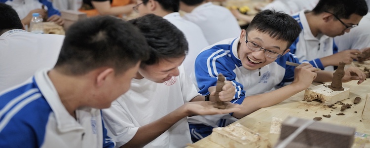 同学们在西安体验兵马俑制作