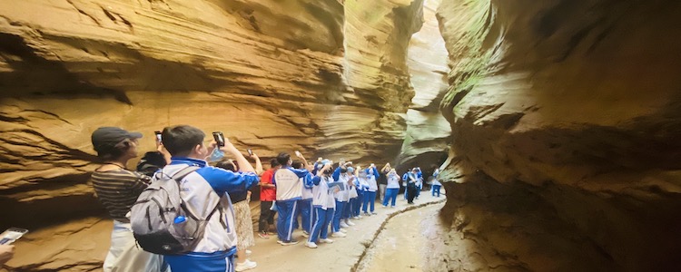 此外,在本次综合实践文化考察课程中,同学们还参观了有“活丹霞”之称的雨岔大峡谷,面对自然美景,同学们纷纷举起相机,记录下最美的回忆,更有许多同学积极向地质老师请教学习。