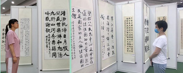 为庆祝中国共产党成立100周年,认真落实《关于加强社会主义法治文化建设的意见》,bg真人娱乐党委联合中国政法大学、中国法学会法治文化研究会于7月5日至7日,在附中举办“学习贯彻习近平法治思想——书画名家庆祝中国共产党成立100周年书法展”。