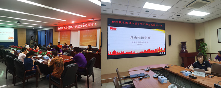 各党支部分别进行了不同形式的党史学习教育。外语体育教研组联合党支部观看了《建党百年图鉴》并分小组进行了学科德育实践报告。数学技术教研组联合党支部开展党史知识竞赛。语文艺术教研组联合党支部、政史地教研组联合党支部分别学习了“七一勋章”获得者的先进事迹。