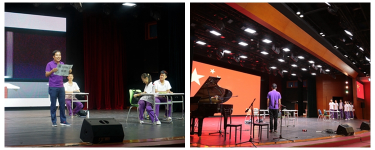 学生午休时间的舞台剧展示,带领同学们回忆起了难忘的天安门群众方阵表演排练时光。在熟悉的《我和我的祖国》的歌声中,同学们再次舞动双旗,回忆同心追梦的岁月。“报国志远 行胜于言”的口号,喊出了附中高三学子的毕业心声。