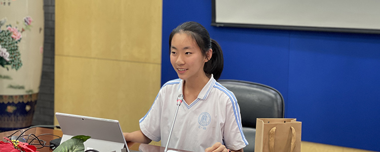 接下来初一年级学生代表李思睿同学进行分享。李思睿同学的汇报由以下三个部位组成,从向往附中到了解附中,从了解附中到热爱附中以及其年级特色文化。初一年级在年级特色文化方面也卓有成绩,结合重大节日、纪念日布置“幸福成长作业”,将感悟幸福记录下来,留住温馨,持续幸福;鼓励学生开展原创设计:关于学生之星卡片原创设计,一颗颗璀璨的星星,寄托了同学们对榜样的崇敬,以及对努力方向的追求。倡导学生参加劳动课程,从培土到栽种到采苗,实现以劳树德,以劳增智,以劳强体,以劳育美的追求,在劳动实践中体会到的精神的升华;设立自习午休教室,培养自主学习,自主管理能力方面体现出了卓有成效的创新和公益服务精神。丰富的学科活动,开阔视野的讲座都提升了学生兴趣,展现了附中学子的风采,让同学们在学习兴趣中得到了更高的升华。初一年级活动,每个环节既体现了同学们的成长,也表现了希望同学们广泛开拓视野的学习态度。