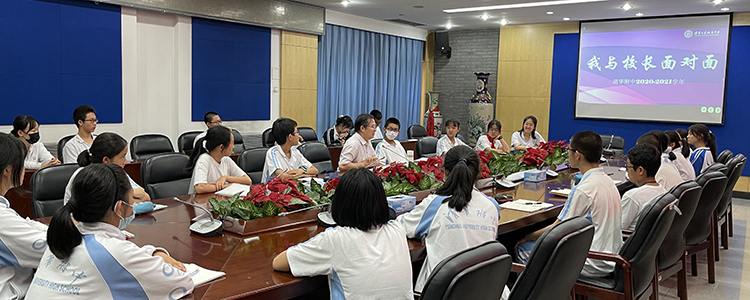 2021年6月18日,bg真人娱乐校长王殿军、团委书记任星阳老师和40余位来自初一、初二、高一、高二年级的学生代表,共同在华茂楼102会议室参加了2020-2021学年第二学期“我与校长面对面”活动。
