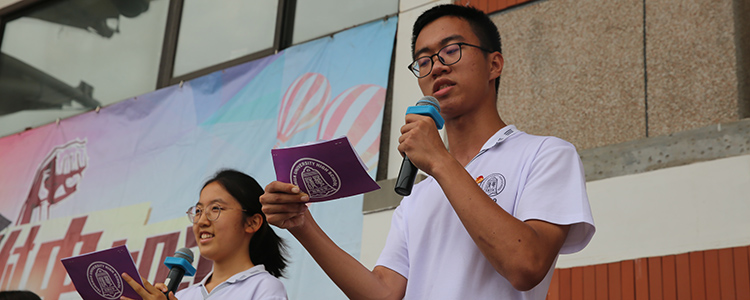 初18级三班朱高安、初18级十四班的胡寓嘉,代表全体初18级同学做出了他们的中考宣言