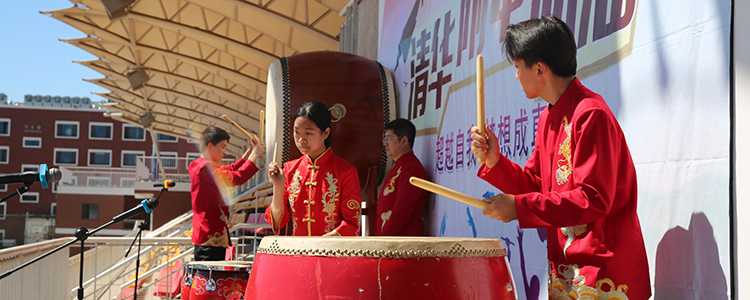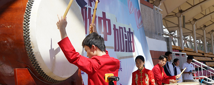 “听——冲锋的号角已经响起,激荡出奋勇向前的力量。” 民乐团的同学们奏响了鼓乐《龙腾虎跃》。这是附中民乐团第十三次站在舞台上为征战高考的“将士们”加油,慷慨激昂的旋律和铿锵有力的鼓点,给予了同学们更大的动力和信心,把加油会的气氛推向高潮。