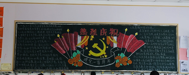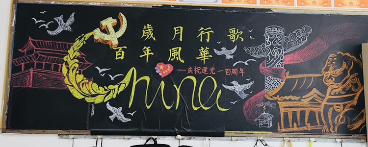 各团支部同学积极响应,从构图的设计、内容的排布到书写、绘画和装饰,都由同学们设计创作。板报紧扣主题,制作精美,内容丰富,创意新颖。体现出同学们对党的崇敬之心,爱国之心,自强不息的精神和青春的朝气,一幅幅各具特色、精彩纷呈的作品成为校园一道亮丽的风景。团委宣传部对黑板板报进行评分,对同学们的创作成果给予肯定。