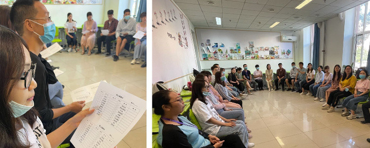 长达两个小时的理论培训结束之后,心理中心周灿灿、牟晓红老师组织参会教师开展了团队辅导活动。热身游戏“乌鸦与乌龟”能够帮助新团队迅速破冰,热身游戏“大风吹”能够让团队成员关注彼此,迈出了解彼此的第一步,“寻人启事”能够引导团队成员适应新人际,树立正确的交友观念。团队辅导活动环节使得新入职班主任和新入职教师尽快熟悉彼此,同时也为班主任上好“开学第一课”充分“备课”。