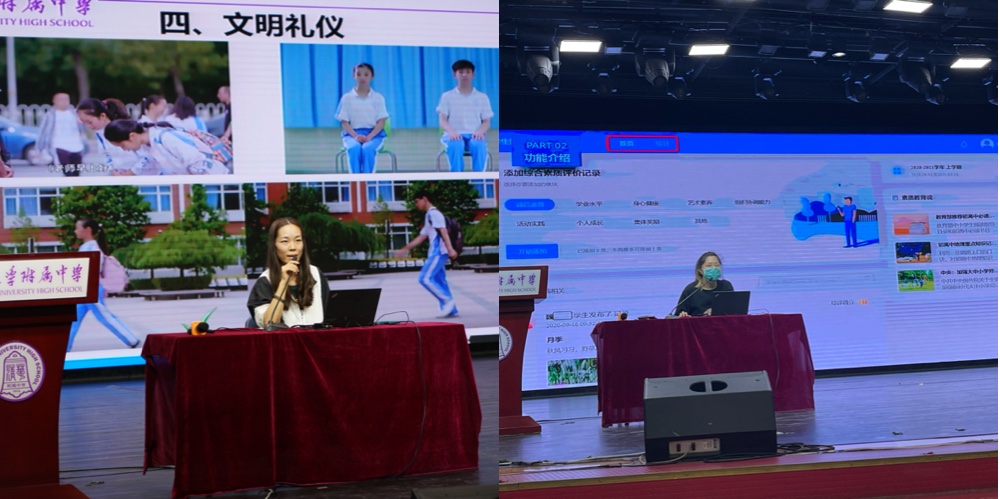 9月1日下午,学生发展中心李冰老师作题为《成长·责任·追求——bg真人娱乐初21级行为规范教育》的讲座,主要内容为“附中有礼”文明礼仪教育和日常行为规范,旨在帮助初一同学尽快适应中学校园生活。之后,网络中心李天爽老师介绍了“bg真人娱乐学生综合素质评价系统”的使用方法与评价标准,鼓励初一新生进行全面的自我评价。初21级李冰清老师带领同学解读《初21级学生公约》,从年级角度向初一新生提出了更加具体的要求,希望全年级同学能够努力“成为更好地自己、成就更好的集体”。
