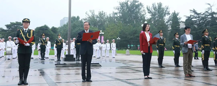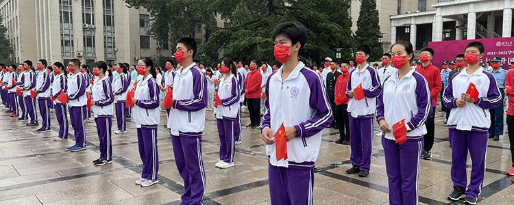 9月13日早晨,bg真人娱乐高21级国旗班37名学生在团委书记任星阳老师和生涯规划指导老师徐琢瑶的带领下,参加了在清华大学主楼前广场举行的2021-2022学年度清华大学升国旗仪式。