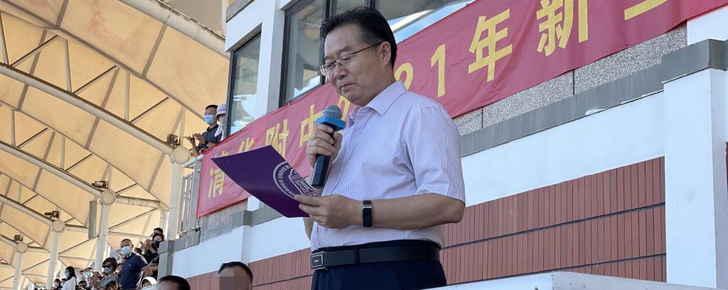 颁奖仪式后,王殿军校长作军训总结。王校长对初21级新生奋力拼搏的训练精神予以极大肯定,对承训教官以及老师们恪尽职守的工作态度表示高度赞扬,对家长们的积极配合表示衷心感谢。他表示,同学们在军训中表现出来的自律自强的意志,互助友爱的精神、奋发向上的精神风貌让他印象深刻,令老师和家长们自豪。同时,王校长热切地盼望同学们能将军训期间形成的优良作风带到今后的学习和生活中,牢记“自强不息,厚德载物”的清华精神,践行“请党放心,强国有我”的承诺,在投身民族复兴的伟大事业中书写绚丽的人生篇章。