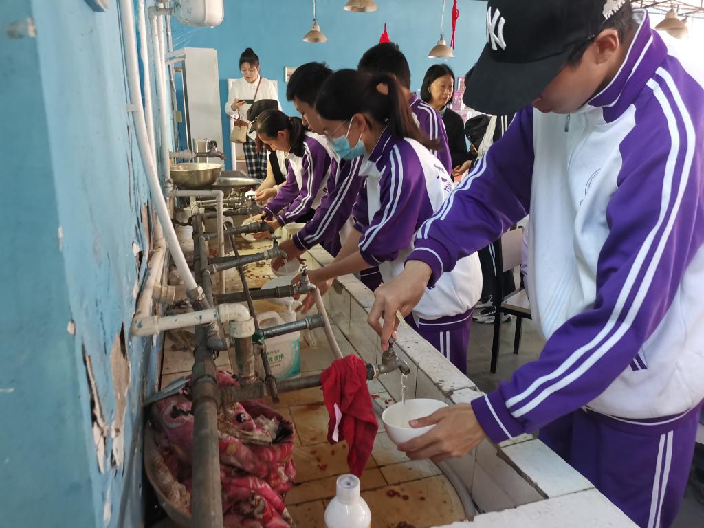 午饭后同学们自觉排队清洗自己的餐具