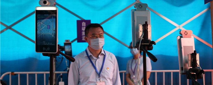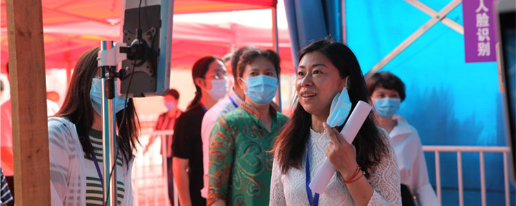 海淀区委常委、宣传部长张劲林检查学校人脸识别体温检测设备