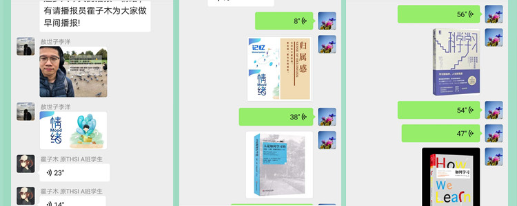 活动精选“学习科学”研究领域中与学生日常学习生活紧密相关的话题,采取早间播报、自由写作、采访交流、晚间播报的形式,带领学生了解“学习科学”的概念、方法和意义。来自全国各地初中、高中、大学的同学,分别围绕“归属感”“情绪”和“记忆”三个话题进行了深度的反思和交流。思考如何适应新环境,获得归属感;研究如何增强调控情绪的能力,反思自己是如何记忆的,这些都属于“人是如何学习”这个范畴。从研究动物如何学习过渡到研究人是如何学习的,正是一个新兴的研究领域“学习科学”的肇始。同学们在8天的活动中,聆听早间播报了解相关的科学实验、理论成果以及实际案例,联系自身实际学习经历,进行反思并自由写作记录。多个地区,多个年龄段的成员产生同一主题不同视角下极为丰富的个性化案例。阅读案例,采访交流等步骤极大的调动了个体的积极性并进一步推动同学对主题更加深入的理解。