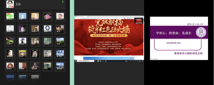 各党支部同时组织了观看首场高校党组织战“疫”示范微党课,学习2020全国两会政府工作报告以及“七一”党员捐款等活动。