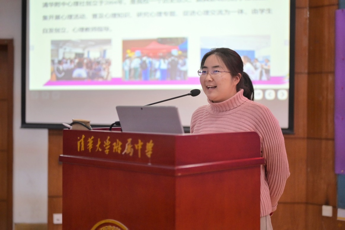 随后,学生领袖训练营心理社指导教师张沛介绍了心理社的课程和时间内容。心理社以“助人自助,共同成长”为宗旨,通过理论探讨、专题研究汇报、观看教学视频和精品社团活动等多种形式,帮助更多同学积极关注心理健康。她提到,心理社力求同学们做到具备领袖素养,培养团队合作的能力和责任感。张沛老师激励同学们努力成为自己,成为一个优秀的人,因为“人人都有潜力可以挖掘”。