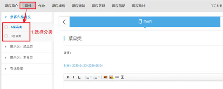 参赛作品分菜品和主食两大类别。工会会员将自己的作品以视频形式上传至空中学堂。视频可以剪辑合成,时长不超过五分钟,使用 mp4 格式,文件大小不超过 50M。