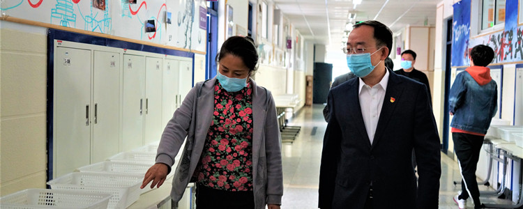 海淀区委副书记孟景伟、清华园街道党委书记高斌在校长王殿军,党委书记方妍的陪同下,实地走访了学校校园,考察校园防疫设施,查看教育教学场所设置、学校医务室设置、学生用餐地点等,对学校细致入微的考虑和疫情防控工作表示肯定。