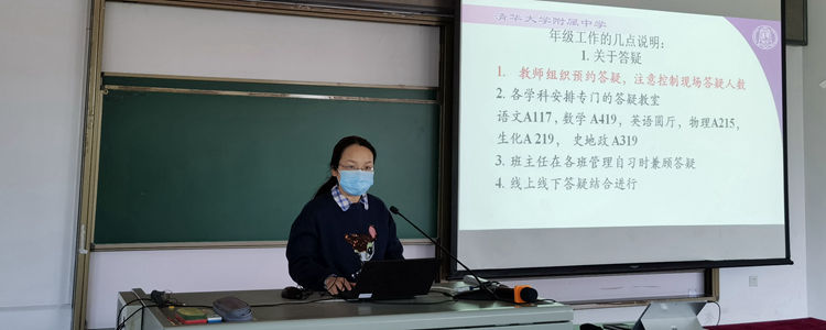 首先,王殿军校长介绍了高三试开学全校各部门做的准备情况,对全体教师提出了几点要求。他表示,每位教师要严格执行市、区相关精神,把好防疫关,及时调整授课方式;要快速进入角色,全身心投入,把课上好,把作业批改好,把答疑完成好;要时刻关注学生心理状况,充分理解学生及学生家长的焦虑心情,持续保持家校沟通,做好人文关怀。