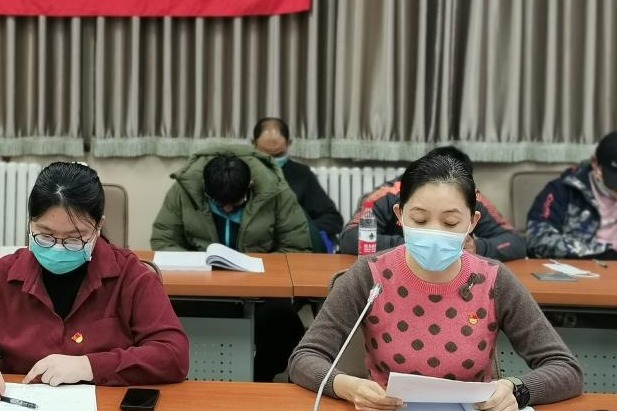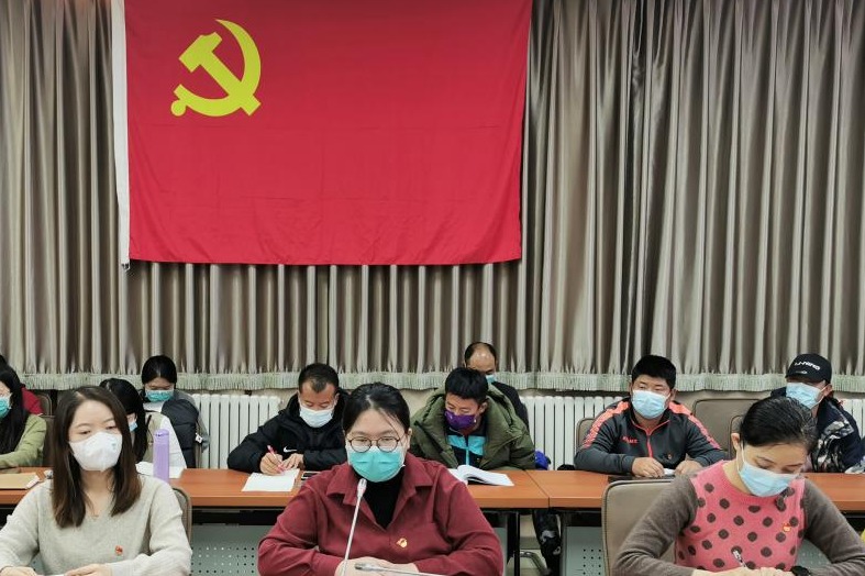 在齐声合唱的国际歌歌声中,支部书记黄丽梅宣布本次预备党员发展和转正大会顺利结束。