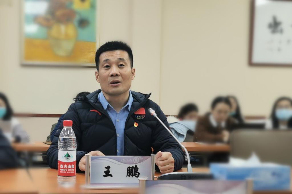 中国冰上运动学院直属党支部书记王鹏介绍北京体育大学中国冰上运动学院的概况
