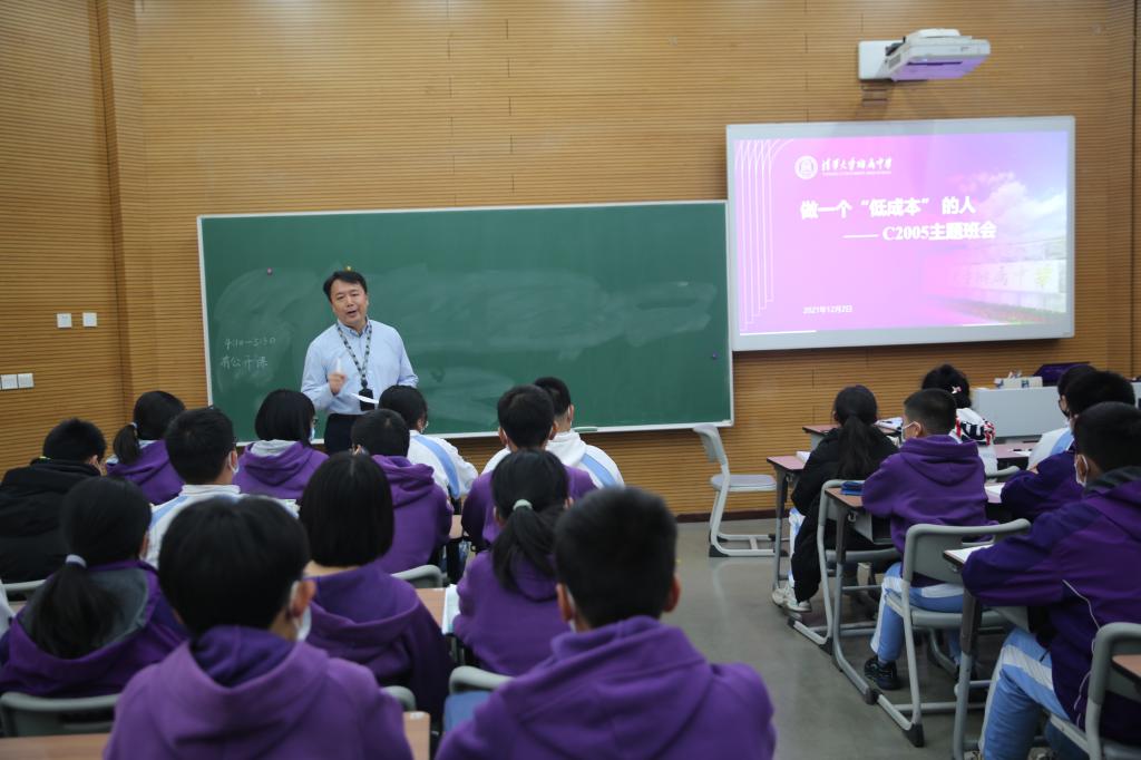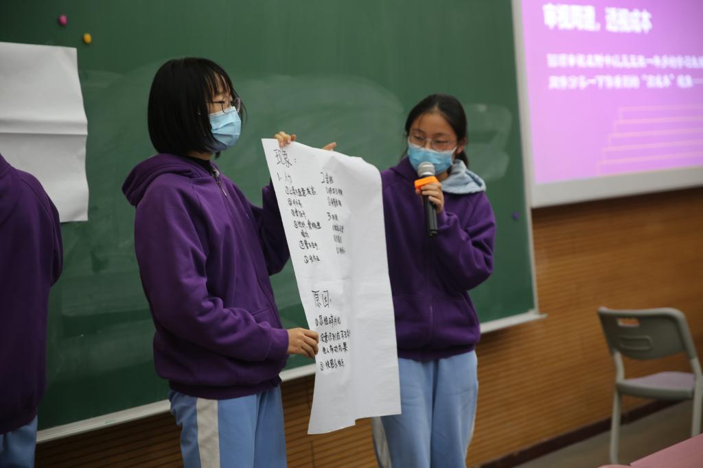 本次班会示范课主题为“做一个‘低成本’的人”,bg真人娱乐初20级郑铉老师带领学生,从一个经济学概念“成本”引入班会话题;组织学生分组讨论,引导学生回顾审视在附中以及班级一年多的学习生活中,然后启发学生思考这些现象背后的原因;最后,郑铉老师引导学生反躬自省,思考如何切实可行地降低在校生活学习的各种“成本”,养成理性自觉的思考习惯,理性地设计自我,还要融入团队等。起承转合,四个环节,环环相扣,层层深入。一节班会课,给学生带来很多启发和收获。