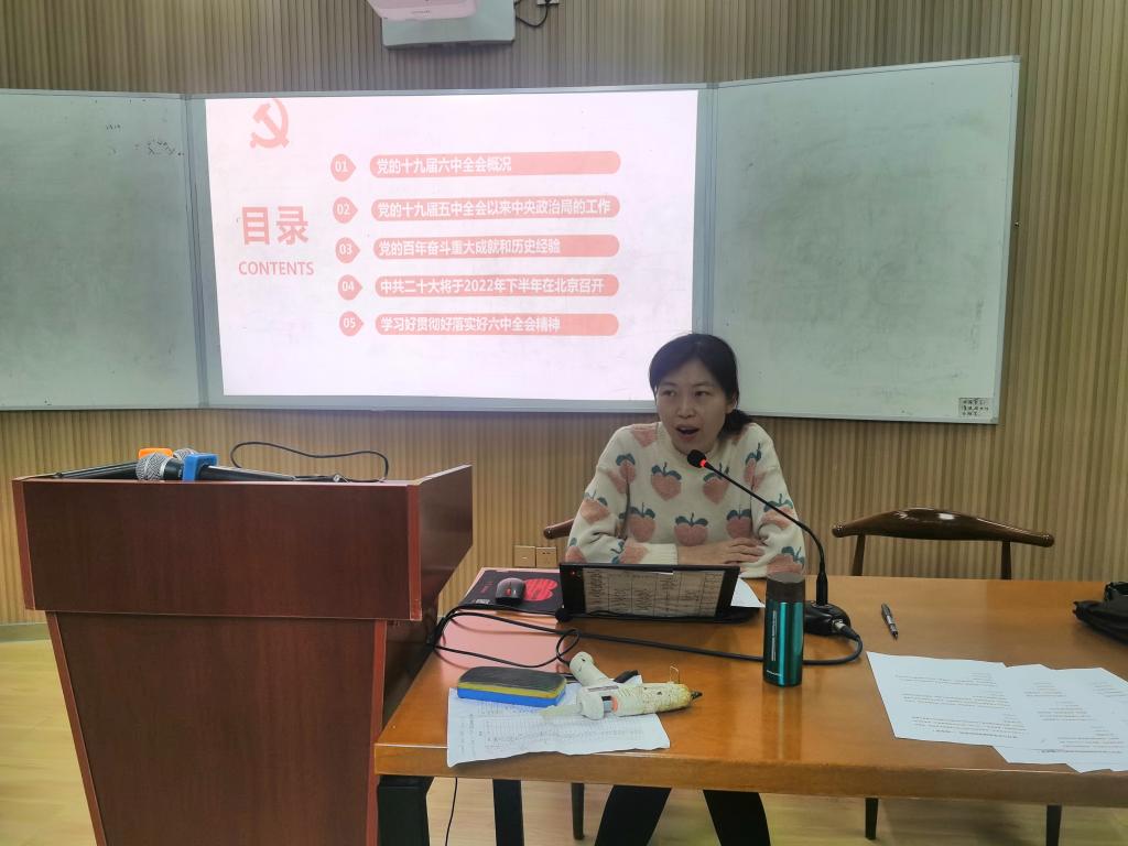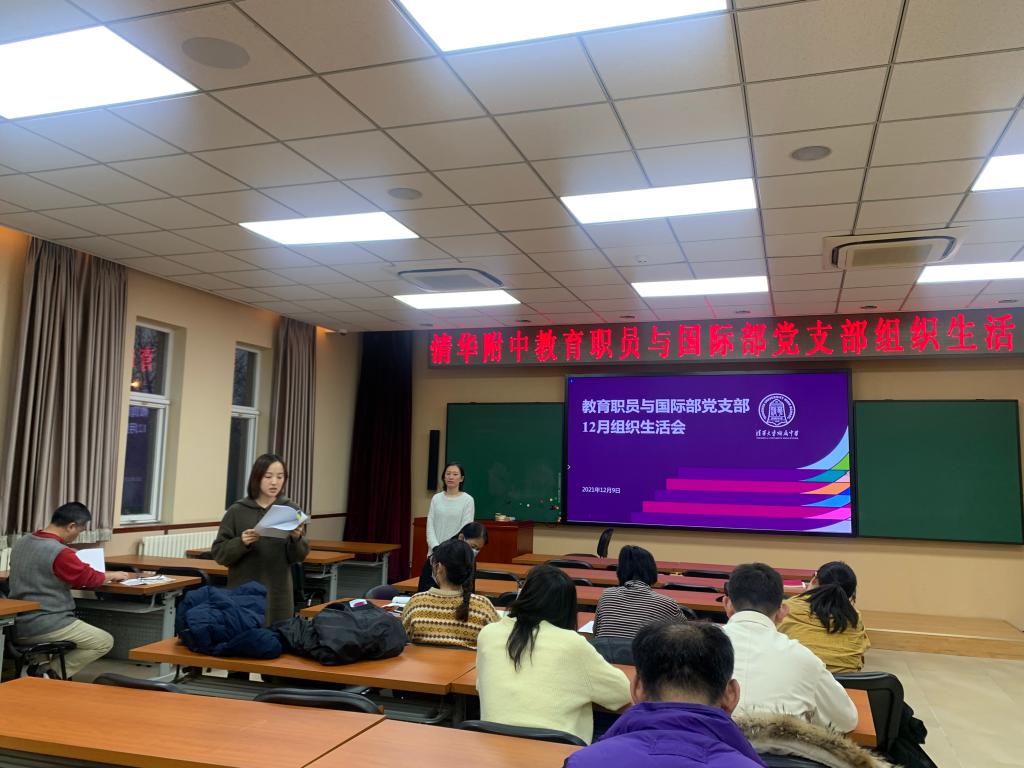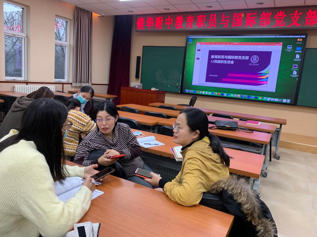 数学技术教研组联合党支部书记周建军为全体党员讲《中共中央关于党的百年奋斗重大成就和历史经验的决议》专题党课,他详细介绍了党的历史性成就,并就党百年奋斗的五大历史意义和十大历史经验进行讲解;政史地教研组联合党支部书记宋薇作《“一二·九”运动与清华大学》主题报告,她结合刚刚落幕的高一年级革命短剧展演活动,为党员教师们进行深入的党史教育;教育职员与国际部党支部全体成员分篇章诵读学习了《中共中央关于党的百年奋斗重大成就和历史经验的决议》(以下简称《决议》),观看专题视频并热烈讨论;理化生教研组联合党支部组织全体党员、部分积极分子观看神舟十三航天员“天宫课堂”直播,深入领会党的十九届六中全会关于“推进科技自立自强”的重要论述。
