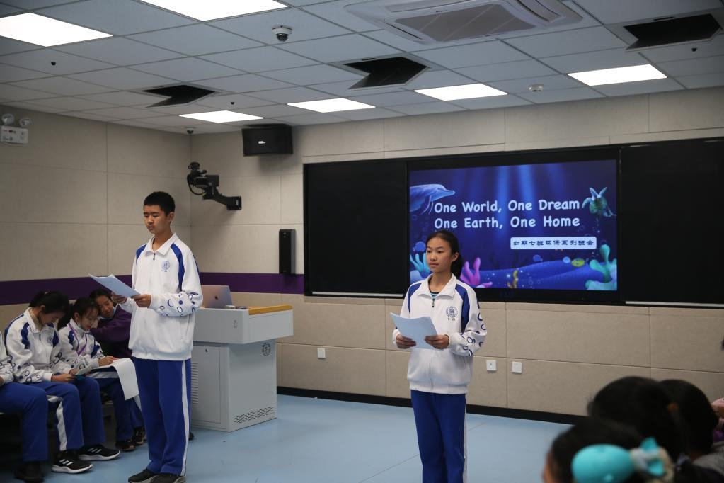 本次班会以“One World One Dream, One Earth One Home”为主题,系初2107班环保主题系列班会之一,由初2107班班主任范皖晴设计并实施,经过年级组和年级成长顾问的悉心指导,向年级教师呈现了一堂贴近生活、新颖有趣、精彩纷呈的班会活动。