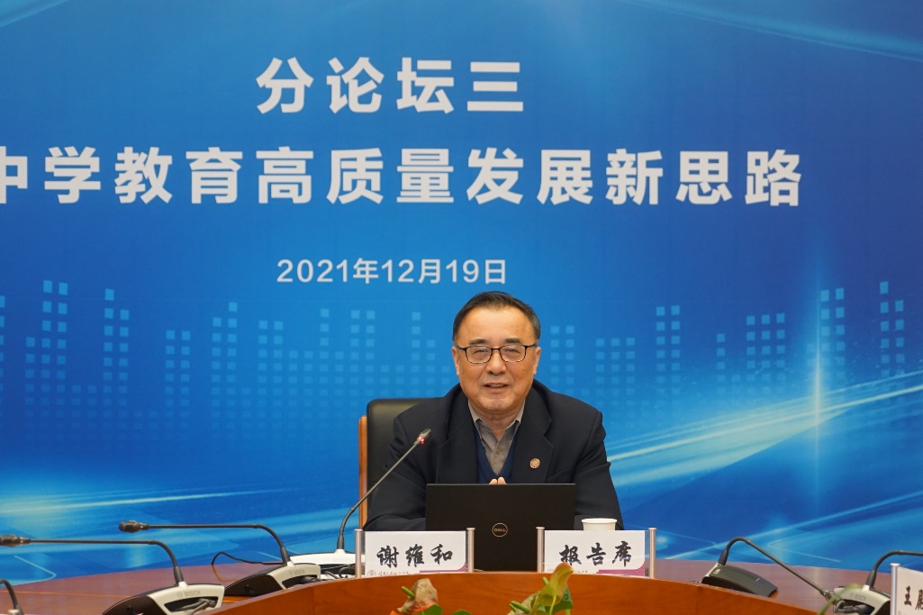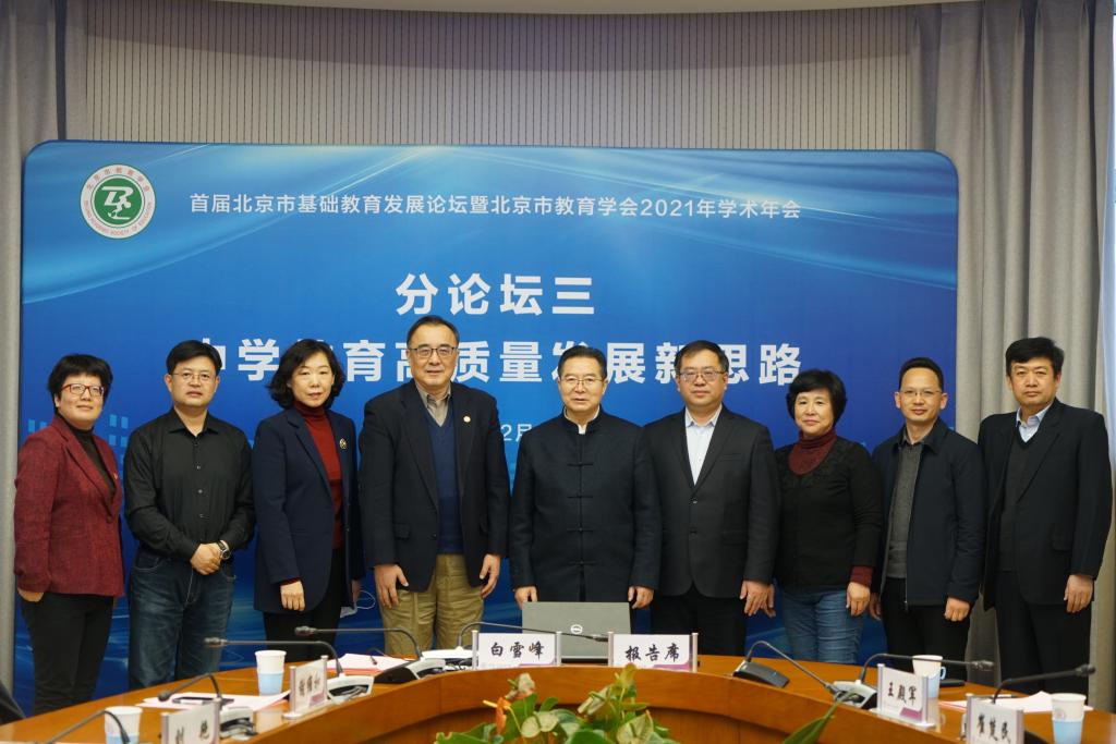 12月19日,首届北京市基础教育发展论坛暨北京市教育学会2021年学术年会顺利举办。其中,主题为“中学教育高质量发展新思路”的分论坛由北京市教育学会高中教育研究分会理事长单位bg真人试玩承办。论坛采取线上直播的形式,由bg真人试玩副校长白雪峰主持,吸引了上万人在线观看。