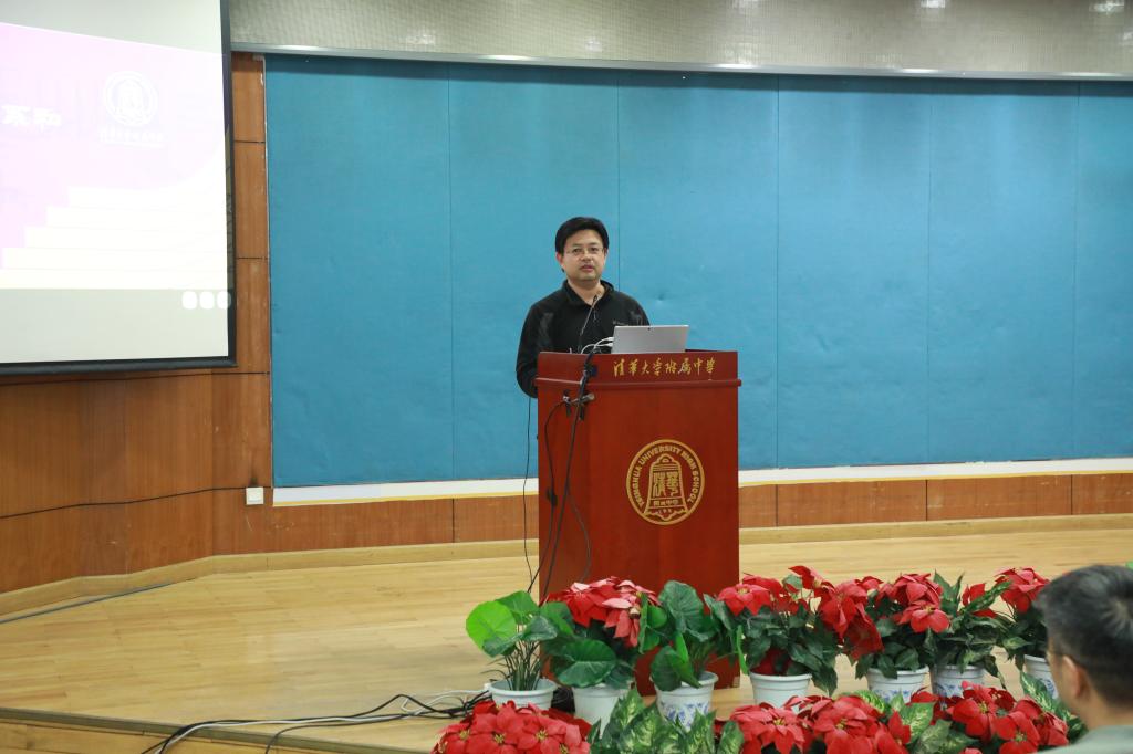 2021年12月17日下午,bg真人试玩初21级邀请知子花教育创始人曹廷珲先生开展家长学校讲座。bg真人试玩副校长白雪峰、初21级年级组长张彪老师及初21级部分家长在华茂楼106参加讲座。本次讲座由张彪老师主持,主题为“青春期的亲子关系和沟通秘籍”,线上线下同步进行。