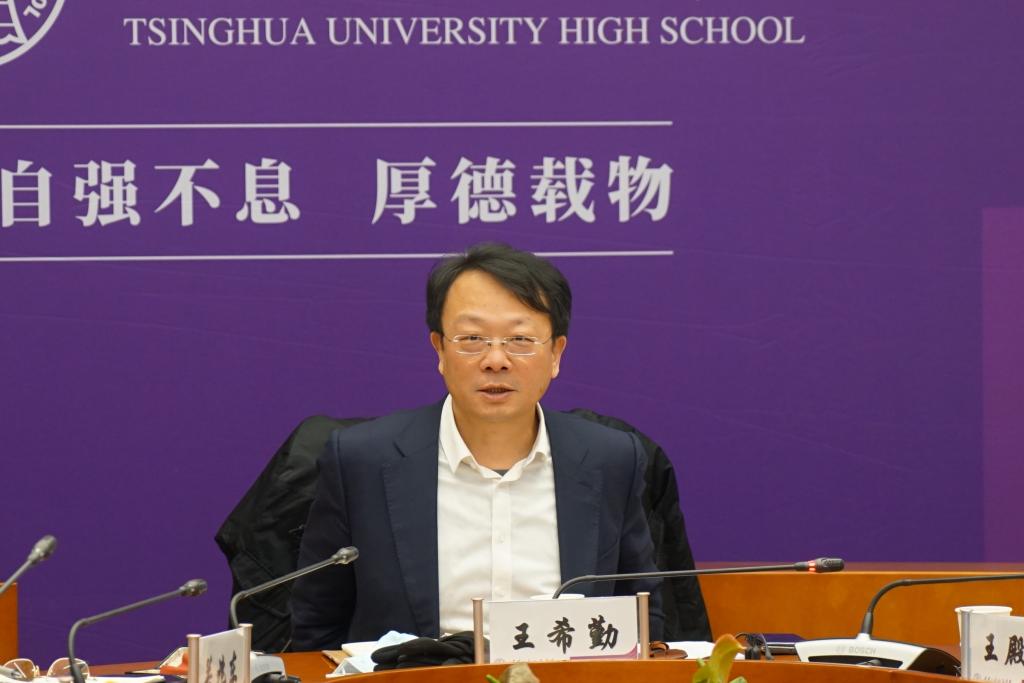 附中校长王殿军作了工作报告,就学校的办学情况,特别是师生规模、2021年取得的成绩、服务大学情况以及目前存在的问题进行了详细的汇报。附中依托清华大学,始终以建设一流中学为办学目标,过去一年,在改革创新、人才培养、落实“双减”政策等方面取得显著成效。近年为服务大学发展,解决大学教职工子女教育问题,培养优秀生源作出了贡献。在实现内涵式发展的过程中,附中面临着新问题和新挑战,希望大学予以帮助和支持,带领附中开创新局面。