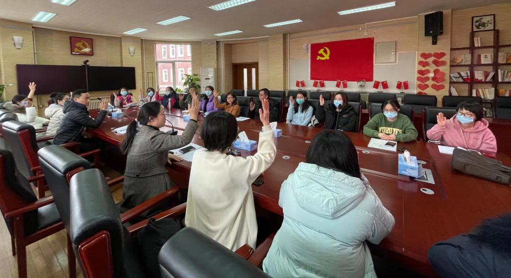 2022年1月19日下午,bg真人试玩教育职员与国际部党支部召开万军民同志预备党员转正大会。党支部书记金云主持大会。
