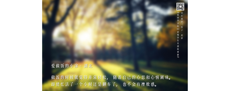 沉浸在自己的小世界里去认真思索每一个课题,写下心中所想,不用在意别人的目光,做自己就好。——桃子 北京