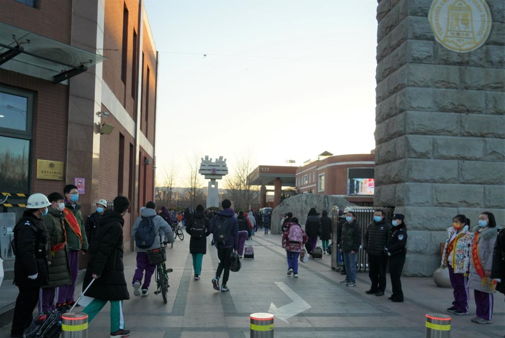 学生们刷卡测温,有序入校