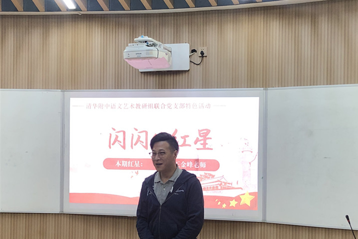 语文艺术教研组联合党支部开展了本学期的支部特色活动——“闪闪的红星:身边党员的优秀事迹”。王金峰老师介绍了附中的艺术教育传统,分享自己担任新年联欢会全校党员红歌联唱指挥过程中,对全体党员高效完成集体任务取得良好演出效果的深刻印象,希望支部老师能继续在党员活动中发挥更大的作用。