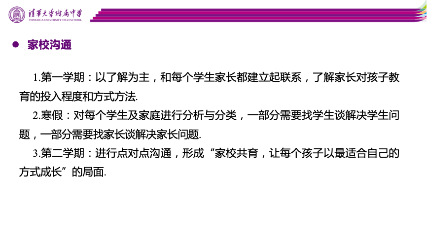 竺屹老师从暑期开始摸索的班级管理理念——“团结友爱一家人”,早在开学前的见面会上就已埋下种子,在班级的日常运转到大型年级活动上欣欣向荣,既有乐于为班集体服务积极踊跃各司其职的班干部身影,又有醉心摄影、擅长体育的学生勇担重任。竺老师表示,班主任不仅应该给学生自由成长的空间,也应尽可能地为学生提供支持帮助,更应该在责任分工中敢于担当不足,激励学生再接再厉。而家校沟通重在因材施教,多方位探究学生“问题”之本源,从片面的学习指导到帮助学生建立乐观向上的生活态度,更不负育人之使命。