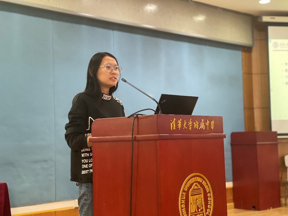 范皖晴老师的分享主题是“三有”班级活动。无论是紧扣节日的主题班会,还是响应学校提倡坚持举办的各类校园、校外活动,抑或发扬自身学科特色普及英美文化的比赛活动,都践行着范老师“有温度、有乐趣、有意义”的活动目标。范老师以“广西四联村小学捐赠”为案例,详细解释了家校、师生、同事之间的互助合作对班级活动的重要意义。漫长的前期准备,学校家委会的多方支持,学生满怀爱心、充满干劲的热情共同促进了这次以图书为主捐赠仪式的成功,不仅激发了当地小学生们对读书的热爱和对更大世界的向往,也让附中学生见到了边远乡村的真实模样,是为后续成为综合性人才难能可贵的实践体验。