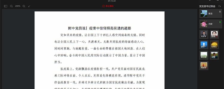 方妍总结指出,战疫当前,克服困难,打破固有习惯,迎接技术挑战,创新教育教学实践是教师的岗位所在;冲锋在前,举旗定向,万众一心,立场坚定,敢于斗争是党员的使命担当所在。疫情期间线上学习带来教育教学上实质性、突破性、系统性的变化,希望党支部带领党员以及群众全面深入思考疫情对教育领域带来的影响,在日常工作中提高站位,深入思考,积极应对,砥砺前行!