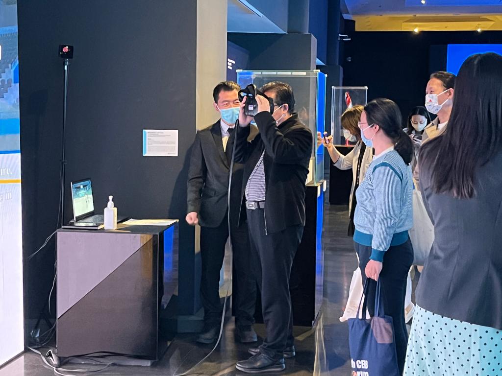党员们和老师们参观“共育未来·奥林匹克科技艺术展”
