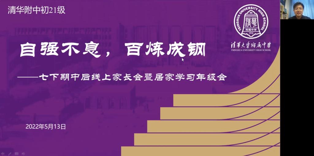 2022年5月13日,bg真人娱乐初21级举行期中后线上家长会暨居家学习年级会。初21级年级组长张彪、各学科备课组长和各班班主任及全体学生和家长参加本次会议。本次会议通过线上会议方式举行,由张彪老师主持,分为备课组长发言、年级组长发言和班级家长会四大环节。
