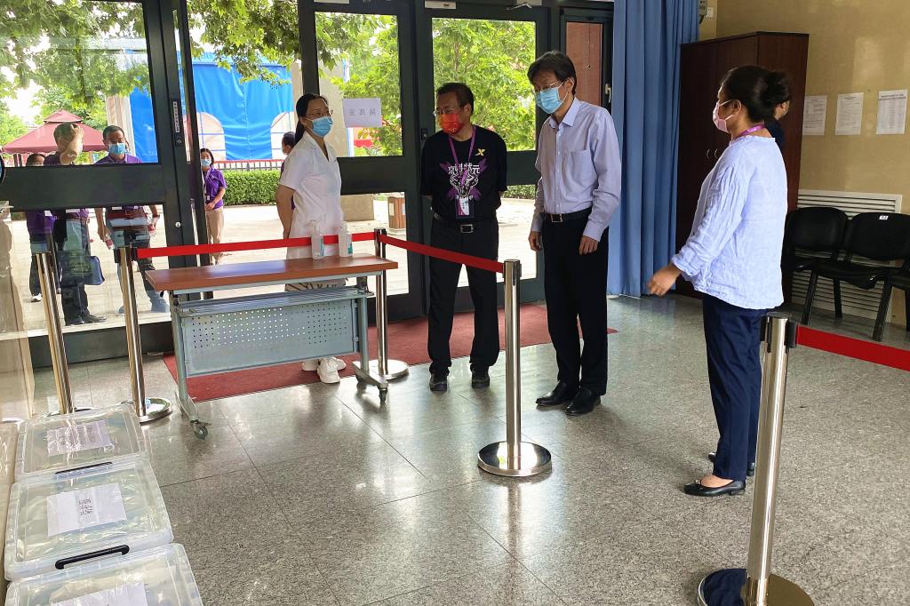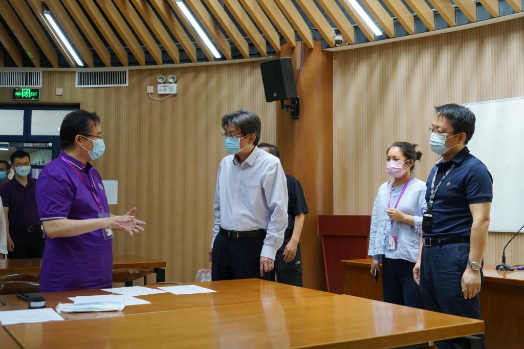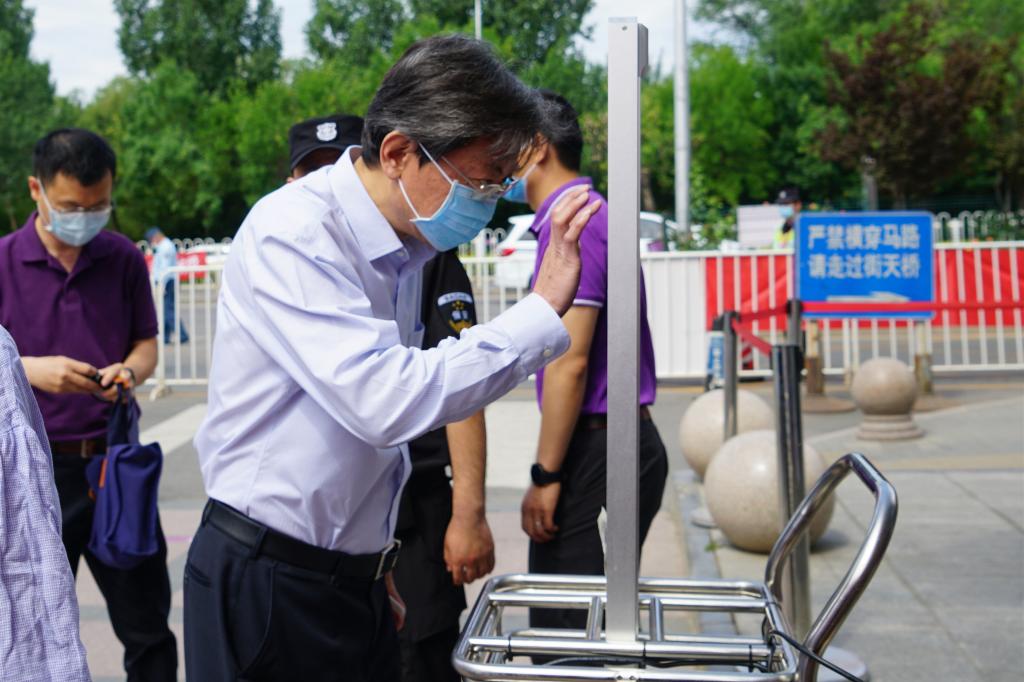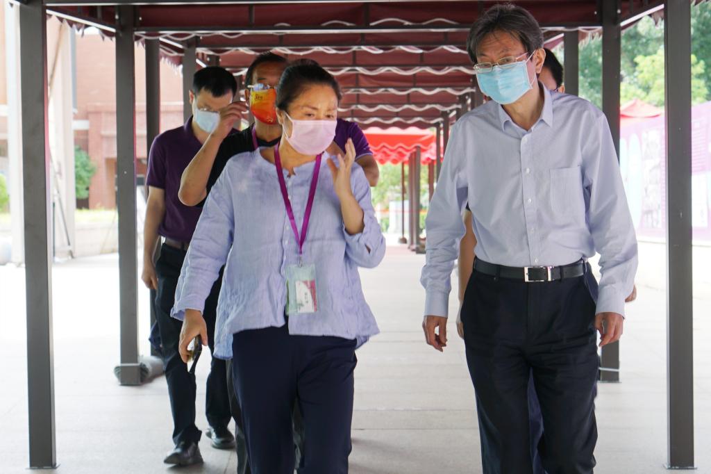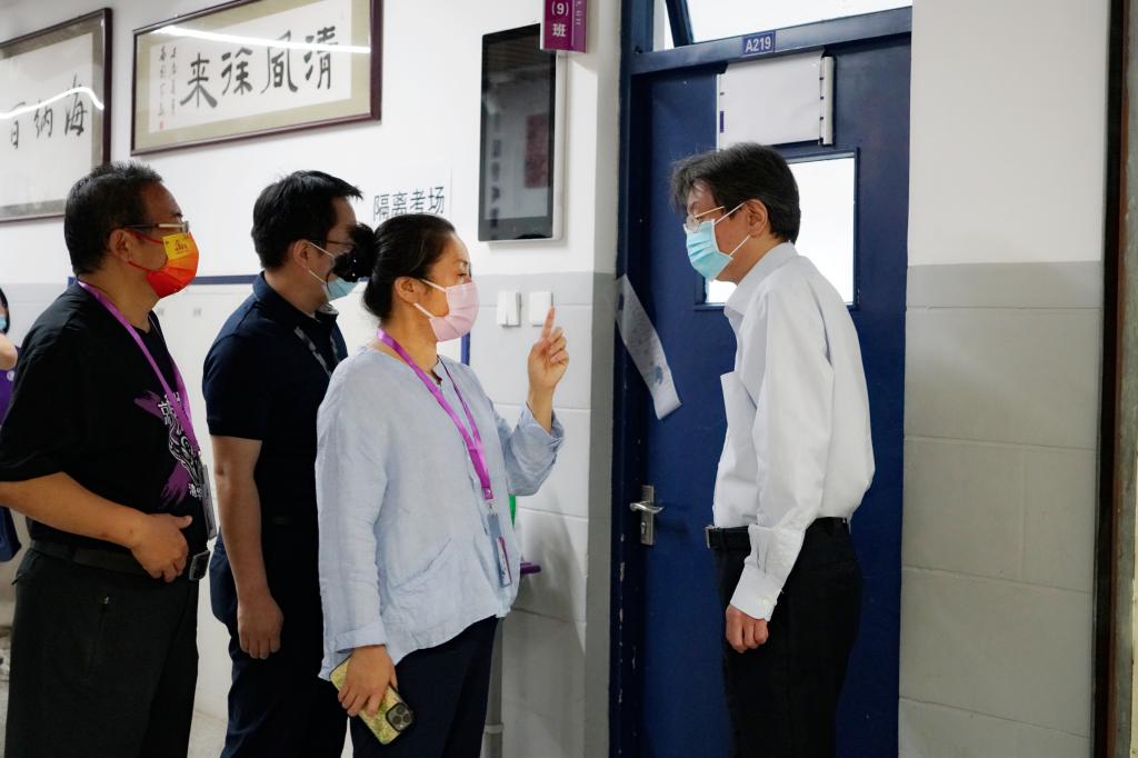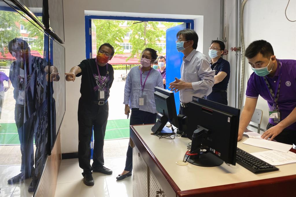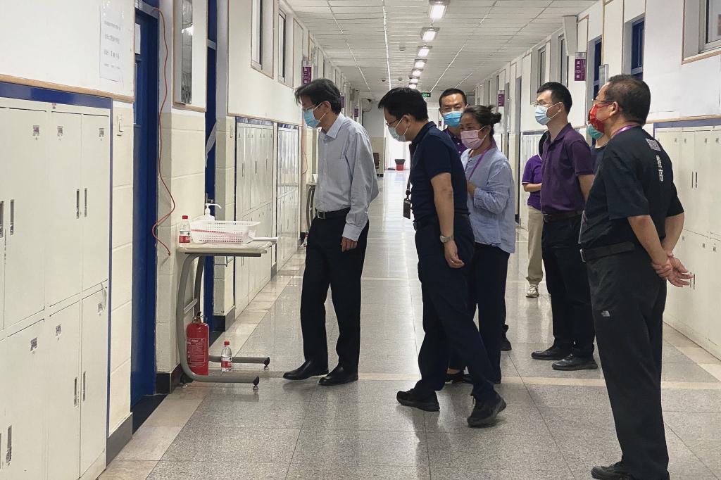 李一兵一行实地查看了校外隔离区域、体温检测设备以及防疫物资、考场情况、主考室、监控室、广播室等地,详细询问了附中高考工作安排和疫情防控措施。附中党委书记方妍一一介绍了为今年高考所做的充分防疫防暑准备,附中严格按照上级要求,悉心为考生营造良好的考试环境,做好疫情防控工作,切实将师生的健康放在首位。