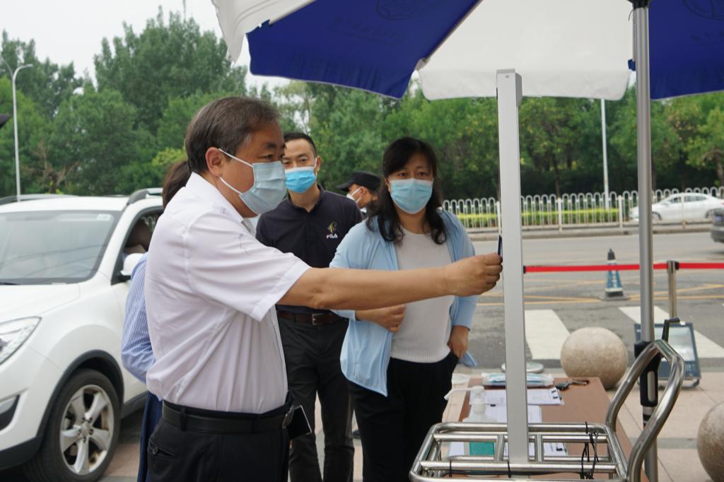 6月12日上午,初三年级返校复课前一天,海淀区委教工委书记王方、上地学区管理中心主任林子敬一行到bg真人娱乐检查初三返校和疫情防控工作。bg真人娱乐校长王殿军、党委书记方妍和全体领导班子成员以及相关部门负责人陪同检查。