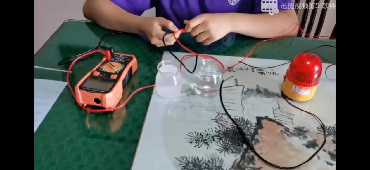 初2117班王远豪带来自来水与盐水的导电对照实验