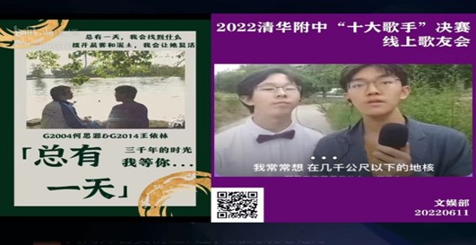 那直播间内一条接一条的弹幕和瞬时刷屏的点赞,好像“云端”的距离并没有将我们的心隔开,反而将大家更好的凝聚在一起。学生节的下午场以“我的2022生活碎片vlog”的展示拉开序幕。居家学习网课之余,行动受限的枯燥和疫情当前的烦躁扑面而来,但附中学子尝试着用各式各样的方法来丰富自己的生活,始终保持着阳光积极的态度。视频中,同学们读书、制作美食、外出放风、欣赏音乐、积极锻炼......精彩别样的活动让同学们的居家生活十分充实和有趣,洋溢着青春活力。vlog不仅展示了同学们的生活片段,更传递出了对学校生活的怀念和期盼,以及期待疫情可以尽快退去的愿望。