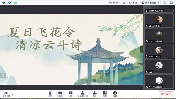 随后学生节正式开启。本届学生节共分为两大板块:“诗乐趁年华”与“哲思创未来”。从配音大赛、才艺展示、十大歌手到线上飞花令、家庭实验展示,以及日常生活vlog、自编健身操。本次活动覆盖多个领域,为广大学生提供了自我展示的平台,丰富了日常生活。活动期间,直播间内一直人气高涨,欢声笑语阵阵。伴随夏天的风和雨,学生节的故事再次被书写。在学生节中,每一份热爱将不被辜负。学生们不只得到快乐,更收获成长。