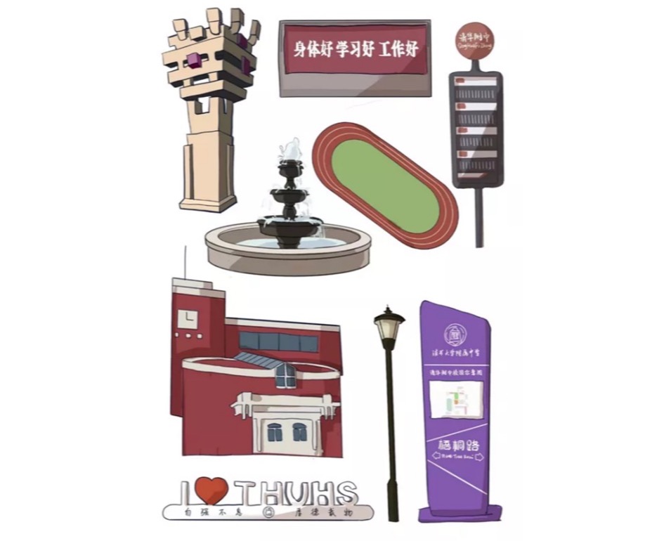 初2018班张书瑜和霍滢霏创作的附中标志物贴纸
