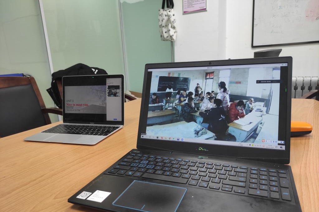 侯家庙乡中心小学“云”见面会现场